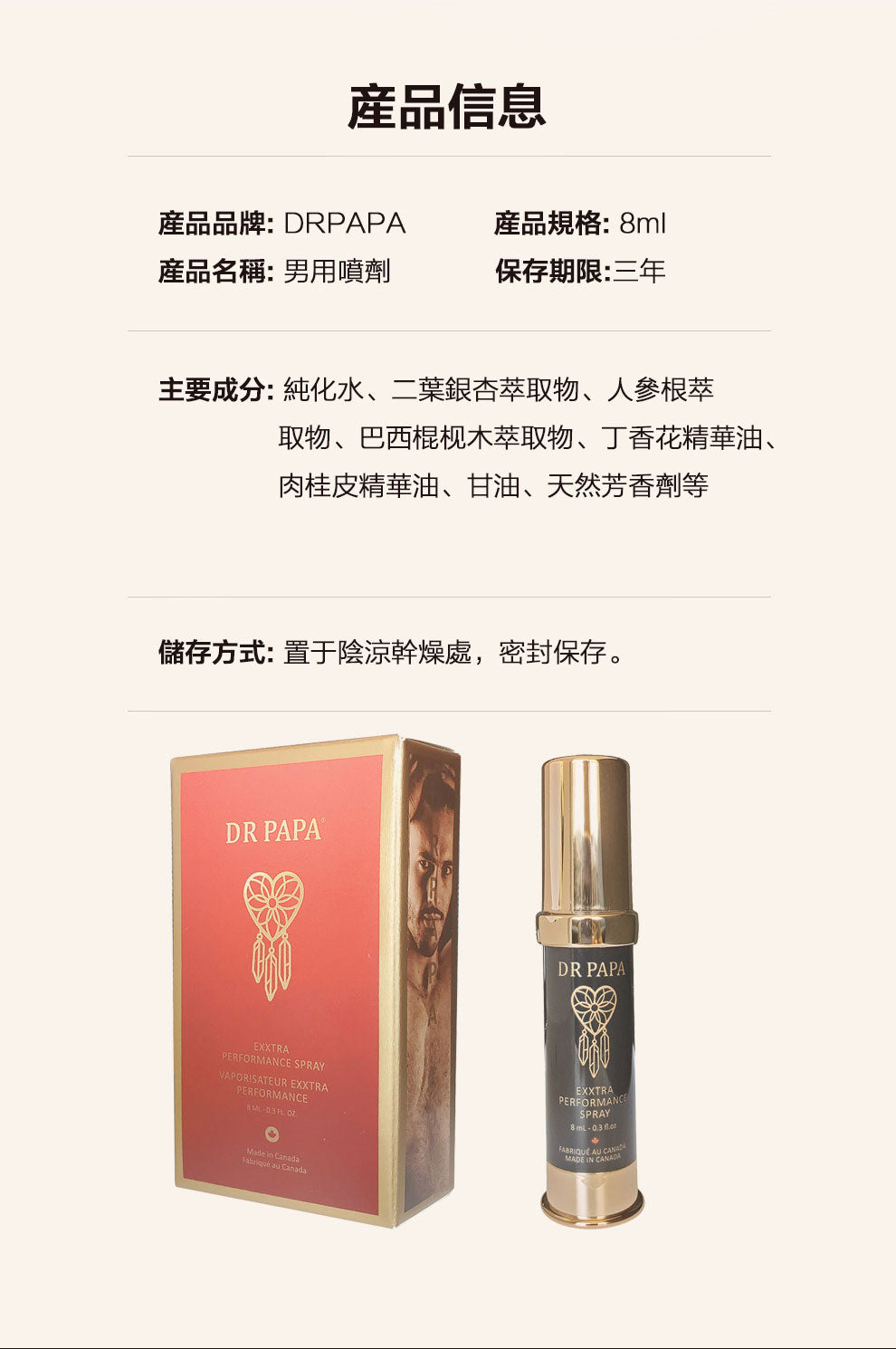 加拿大DRPAPA男用持久神油延時噴劑尊享版 8ml