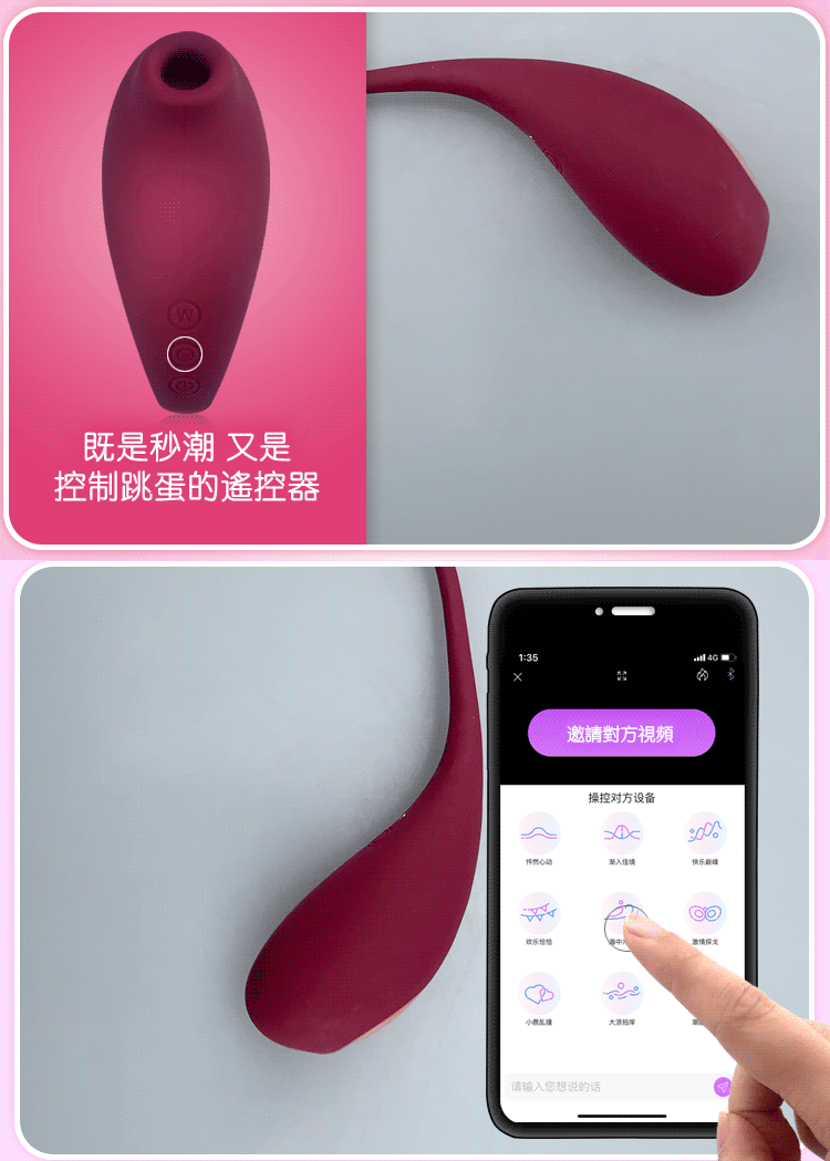 - 吮吸器以及入體跳蛋雙結合,前戲自慰吸震玩法多多;