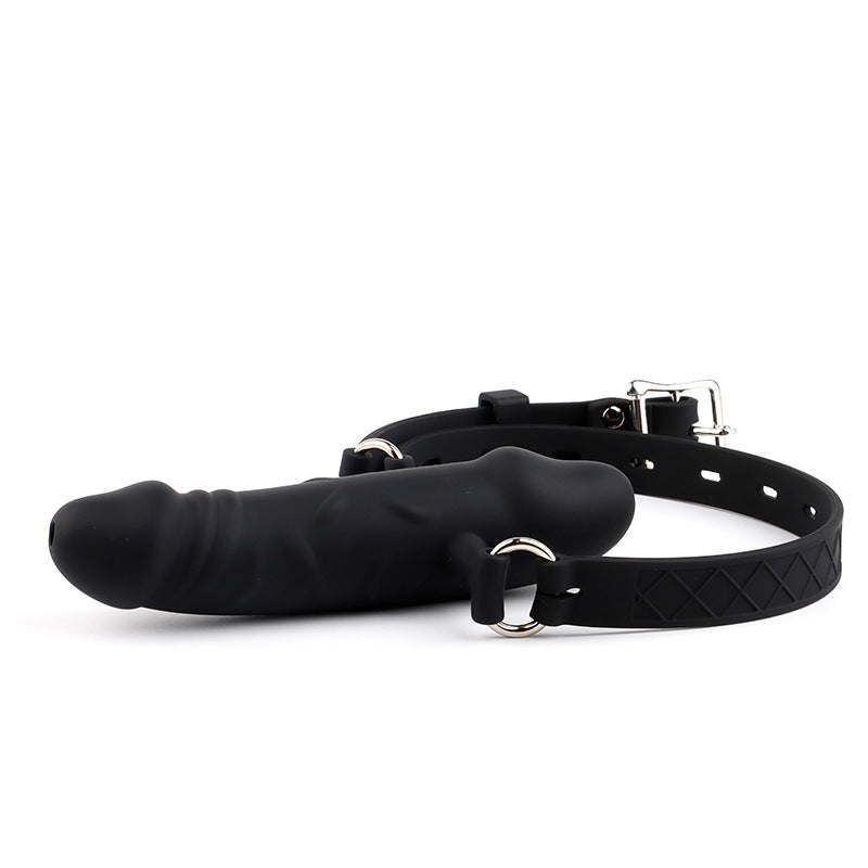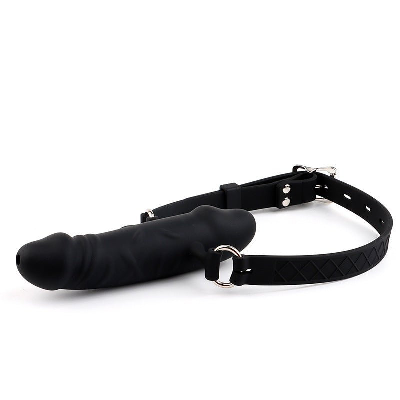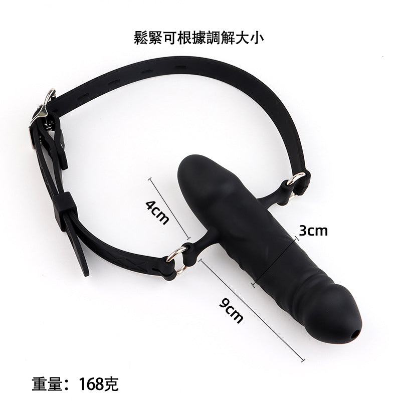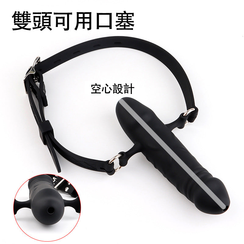 雙頭陽具口球 通孔流口水情趣矽膠SM口塞 奴隸調教工具