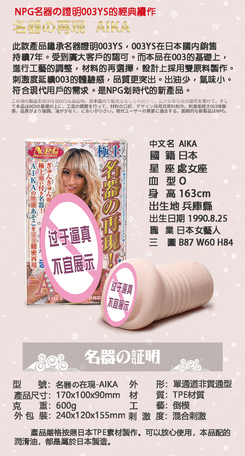 NPG名器證明AIKA擬真陰臀名器 強刺激男用TPE飛機杯